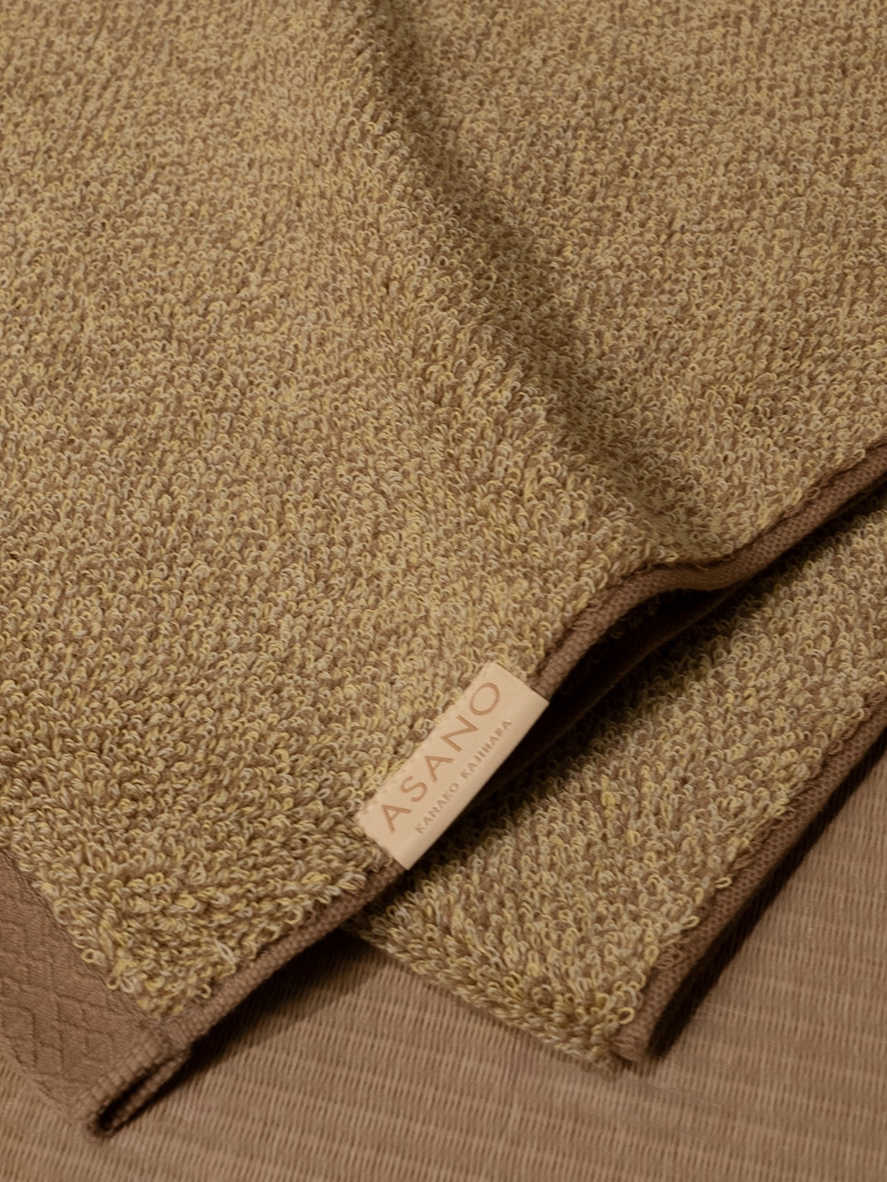 The KASUMI towel is made from organic cotton that is pesticide-free and non-GMO. It features a heathered design created by dyeing the White King 40/2 yarn in three colors. The long staple fibers of White King thread provide a silky luster, bright whiteness, and excellent color retention. Additionally, it utilizes the revolutionary "Super Zero" spinning technology, which involves applying a twist to the thread that spins the thread in the opposite direction resulting in increased volume.