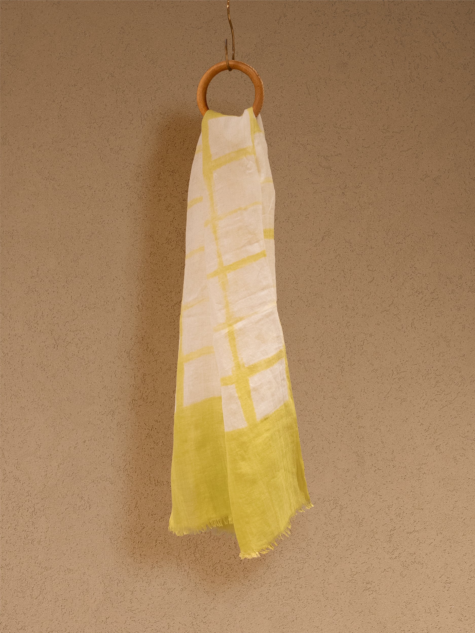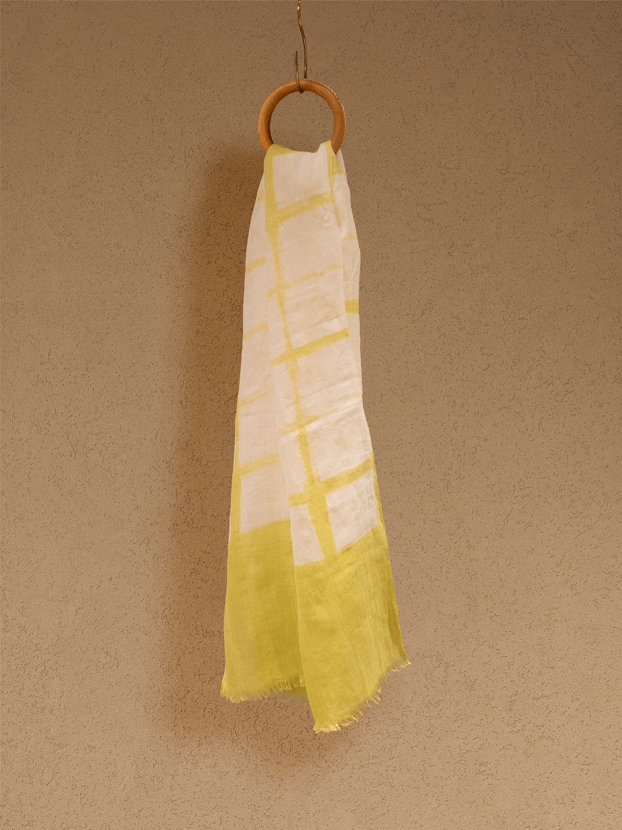 The SHADOW LINEN ITAJIME DYED SQUARE is made from natural linen, featuring a stunning design created through a unique itajime dyeing technique. Its lightweight and breathable fabric provides a comfortable feel against the skin. With its simple yet eye-catching design, this versatile stole complements various styles and can be worn throughout the seasons.